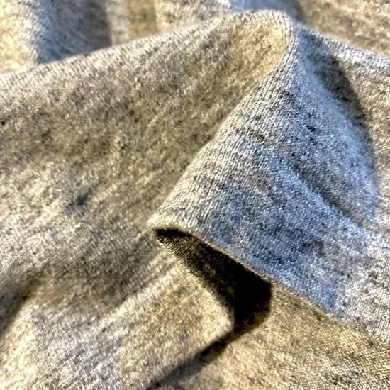 使用している糸は同じなのですが、ゲージが甘く少しだけ生地が薄いのでライトな仕上がりです。ほんの数メートルしかないのですが、やっぱり捨てらんない生地なので、サープラスシリーズから発売させていただくことにしました。