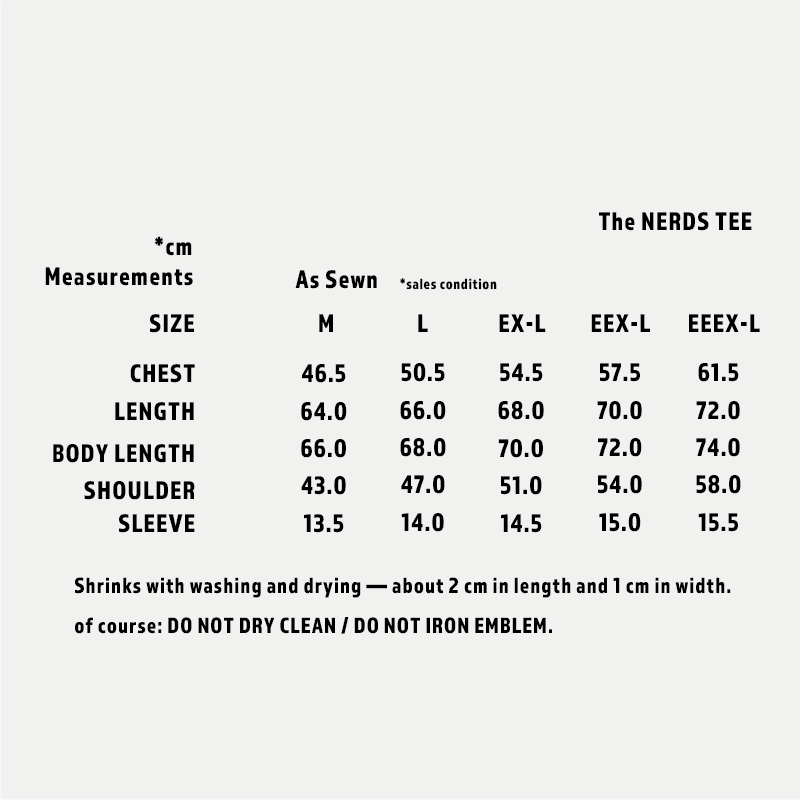 *新型のThe NERDS TeeにWE SEW 100 MILLION を記念してラバープリントをしました。ツヤありインクなのがナイスです。サイズ感はいつものSURE TEEがLの方はEX-LARGEをお選びください。未洗いの状態でお届けしますので、乾燥機で縮めたらおよそ同じサイズ感です。
