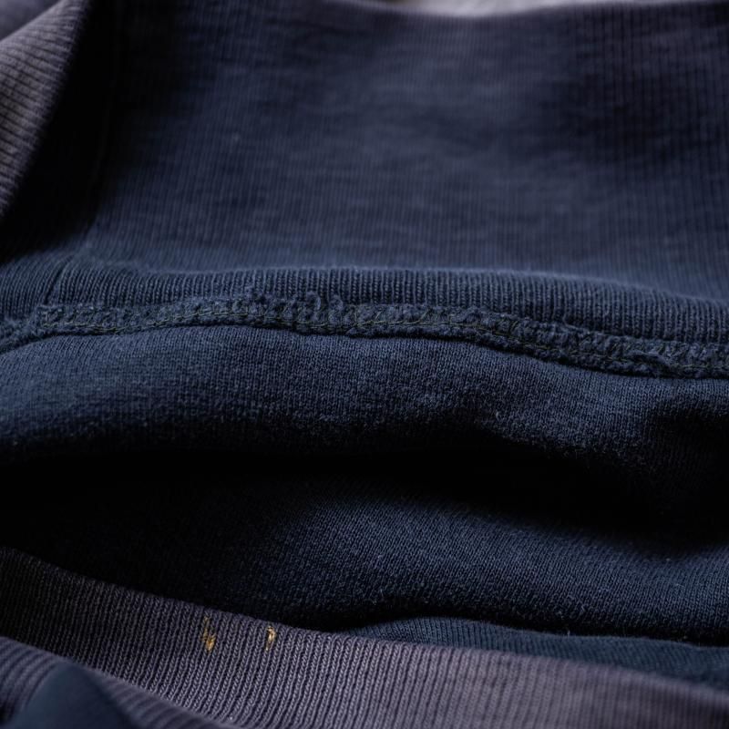 厚みや質感には満足していましたので、変更していません。表糸を1本から2本に…ルーペで見ると確認できるレベルです。そして、リブは2本を1本に。これはビンテージと同じ設計です。…なんでか?は正直わかりません。糸を何種類も使うのは合理的なアプローチじゃないので、なるほど!には至っていないのですが、きっと理由があるはずです。