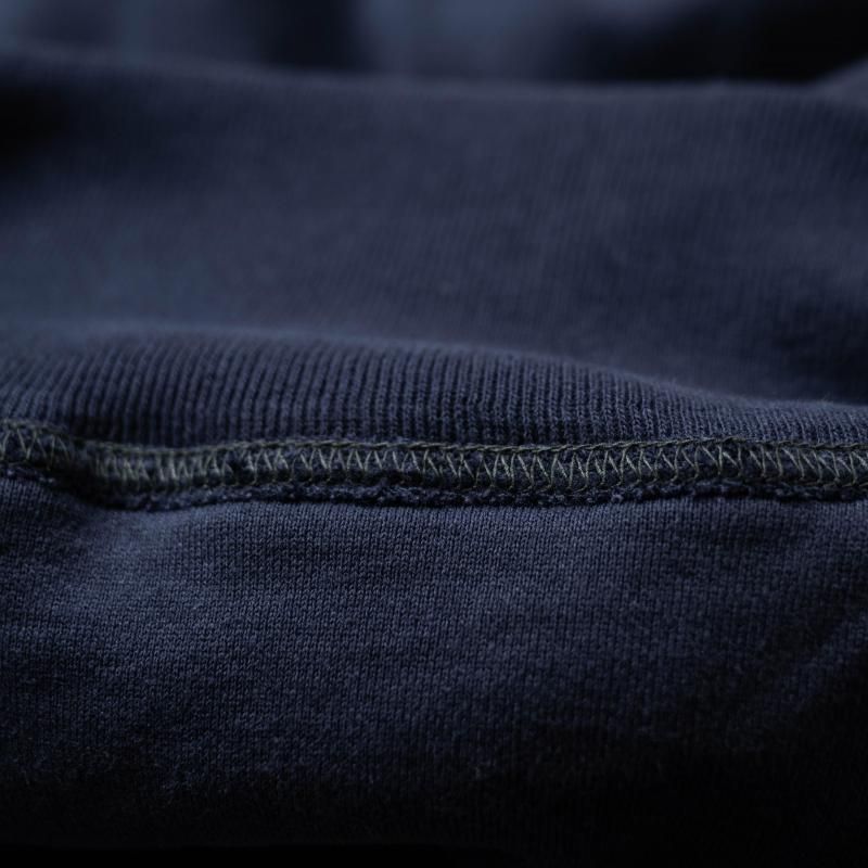 XLサイズに合わせて丸胴で仕上げています。もちろん裾リブも。何回か生産を重ねてデータが集まり、ようやく実現することができました。
