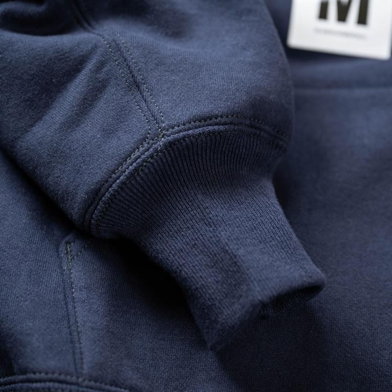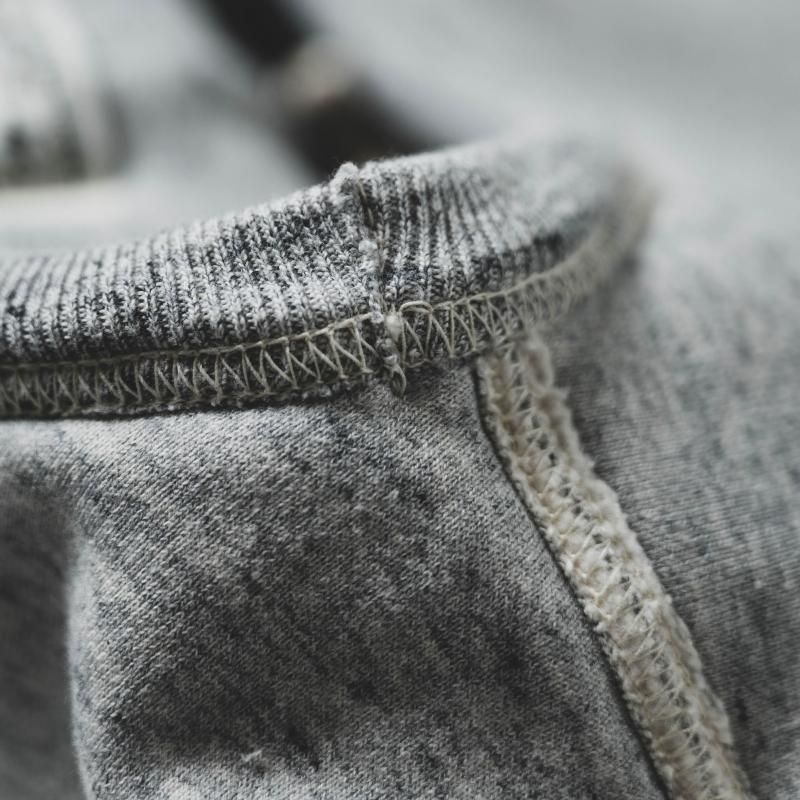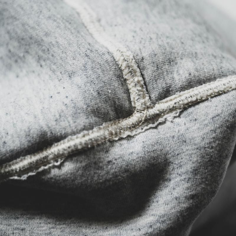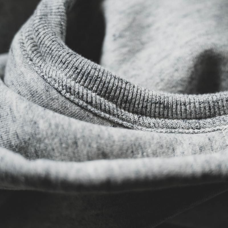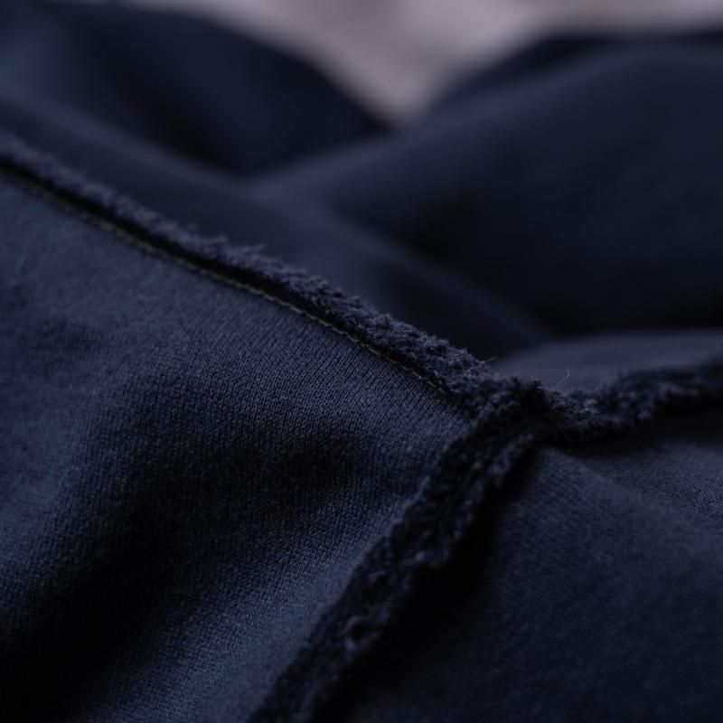 糸から作ったフルオリジナル。今回は糸番手を変更したので、2種類の糸を紡績しました。1本を2本にした本体の糸と、2本を1本にしたリブの糸。これはチャンス!だと思って黒の比率を変えました。念願だったツートーン。 まさに、キングオブフーディー!