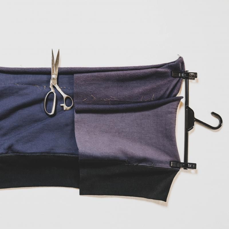 ただ、ほんとうの正解はもう少し深いところ。チェーンステッチだけなので、生地端がフリーの状態。カバーステッチをかけると潰れてくれるのです。特にダブルフェイスの場合に効果抜群でした。縫い目も固くならないし、ファーストアラスカの時には曲がれなくて苦労したのに… めちゃ曲がれます。笑